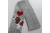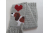 Basset Hound scarf. The scarf is hand crocheted with light grey yarn and features a tricolor Basset Hound dog and red hearts. This is an original crochet design and part of our "love my dog" scarf series. This scarf is made with very soft yarns and has a soft, flexible drape. The tri-colored Basset is crocheted with white, rust, and brown yarns. The dog has a chocolate brown eye with black center and a black nose. The hearts are crocheted with really red color.
