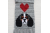Gray knit King Charles Cavalier Spaniel scarf with tricolor dogs and red hearts
